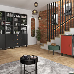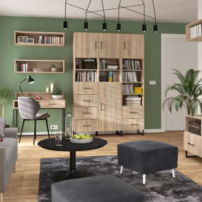 W kolekcji Modeo znajdziesz wiele rodzajów mebli, a wśród nich komody, szafki, szafki RTV, regały, witryny, szafy i biurka. Zaprojektuj ich wygląd, dobierając różne kształty nóżek wykonanych z drewna lub metalu oraz szeroką gamę uchwytów - punktowych lub relingowych. Wybierz fronty i szuflady spośród szerokiej gamy rodzajów, kolorów i wymiarów. Pamiętaj, że możesz łączyć ze sobą różne rozwiązania.
