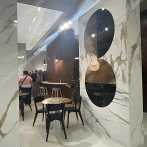 Marka zadbała, aby na swoim stoisku zaprezentować międzynarodowej masie odbiorców to, co w polskim designie najlepsze. Na stoisku można porozmawiać z Oskarem Ziętą, najlepiej przy wspólnym stole, który zaprojektował. Blat ze spieku wielkoformatowego TRI-D połączony z nogami Chippensteel Inox to idealna kompozycja tego, co innowacyjne i świeże w wyposażeniu wnętrz. Na stoisku można podziwiać także inne projekty Oskara Zięty, w tym całą gamę modnych na całym świecie krzeseł i stołków Ultraleggera oraz taboretów Plopp wykonanych w technologii FiDU.