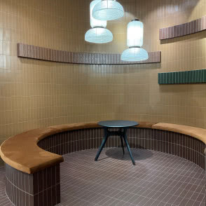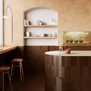 Maja Ganszyniec zaprojektowała stoisko marki, swego rodzaju wizytówkę kolekcji, które Paradyż promuje na targach w Bolonii. Projektantka połączyła premierową kolekcję klinkieru, spieków TRI-D czy gresu w spójną przestrzeń, która sprzyja rozmowom o prawdziwym designie.