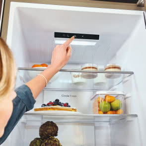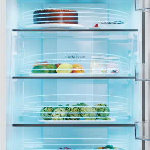 O świeżość naszych produktów dba również funkcja Total No Frost Circle Fresh. Zapewnia ona boczny przepływ powietrza wewnątrz lodówki po to, by temperatura i wilgotność utrzymywane były na odpowiednim poziomie. Dzięki temu żywność dłużej zachowuje smak, soczystość oraz pełnię wartości odżywczych.