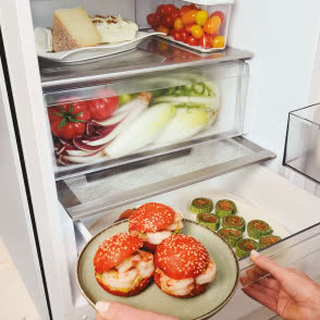 Nasze warzywa i owoce najlepiej przechowywać w szufladzie Adaptive Humidity Area zaprojektowanej w taki sposób, by samoczynnie utrzymywała optymalne warunki przechowywania żywności. Dzieje się tak za sprawą specjalnej membrany z włókien naturalnych Natura Fiber, która utrzymuje wilgotność powyżej 80%, dzięki czemu sezonowe warzywa i owoce pozostaną świeże jeszcze dłużej.