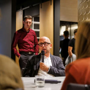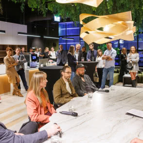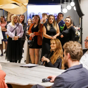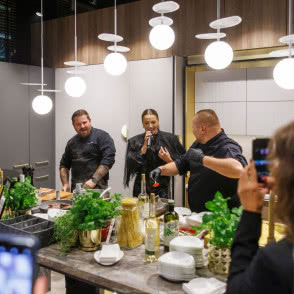 Podczas inauguracyjnego spotkania przedstawiciele Grynasz Studio, wraz z architektami Szymonem Hanczarem, Piotrem Kalinowskim i Jackiem Trycem, uczestniczyli w rozmowie prowadzonej przez Olgę Kisiel-Konopkę, właścicielkę OKK! PR. Premierowa dyskusja przy oryginalnym stole, zaprojektowanym do showroomu przez Grynasz Studio, skoncentrowała się na wyzwaniach jakie stawia współczesny design, rosnącym znaczeniu zrównoważonego rozwoju oraz roli projektantów w tworzeniu nowoczesnych wnętrz. Strefa spotkań we wrocławskim oddziale JUAN czeka na następnych gości, architektów i ich klientów - wszystkich szukających lepszego wyboru, doskonałych materiałów i niebanalnych inspiracji.