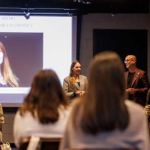 Kontakt-Simon wspiera również jedną z najzdolniejszych absolwentek Akademii Sztuk Pięknych w Warszawie, stypendystkę Urszulę Gruszewską. Podczas wydarzenia projektantka i wykładowczyni ASP, w rozmowie z Olgą Kisiel-Konopką, opowiedziała o swojej zwycięskiej pracy dyplomowej - projekcie ośrodka dla osób dotkniętych chorobą nowotworową. Praca ta wyróżnia się wyjątkową wrażliwością, funkcjonalnością oraz umiejętnym połączeniem designu z realnymi potrzebami pacjentów i ich rodzin, co doskonale wpisuje się w wartości promowane przez Kontakt-Simon.