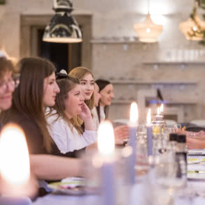 W uroczystej kolacji, która odbyła się 3 grudnia, wzięli udział laureaci, członkowie jury konkursu oraz przedstawiciele marki Samsung. Spotkanie stało się nie tylko podsumowaniem kreatywnego przedsięwzięcia, ale również doskonałą okazją do integracji środowiska pasjonatów designu. W nastrojowej scenerii restauracji Qchnia Artystyczna, przy blasku świec i wyśmienitym menu, toczyły się ożywione rozmowy pełne inspiracji i wymiany doświadczeń. Dyskusje koncentrowały się zarówno na tematach związanych z codziennością i kulinariami, jak i na głębszych refleksjach dotyczących wyzwań i trendów w projektowaniu wnętrz. Szczególną uwagę poświęcono zwycięskim projektom - ich wyjątkowości, innowacyjności oraz historii stojących za ich powstaniem. Kameralna atmosfera spotkania sprzyjała nieformalnym rozmowom i zacieśnianiu relacji między laureatami a członkami jury.