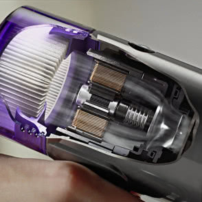 Zaawansowany system filtracji Dyson to kolejna zaleta wyróżniająca odkurzacz Car+Boat. W pełni szczelny system filtracji wychwytuje 99,99% cząstek o wielkości zaledwie 0,3 mikrometra, w tym kurz, alergeny, a nawet bakterie. Wysoki poziom filtracji jest ważny nie tylko dla zapewnienia czystej powierzchni, ale także dla utrzymania zdrowszego środowiska zamknętego. Gwarantuje, że potencjalnie szkodliwe cząsteczki są wychwytywane z powietrza bez uwalniania ich z powrotem. Rozwiązanie to jest szczególnie przydatne podczas czyszczenia takich miejsc, jak materace lub legowiska zwierząt domowych, które mogą zawierać cząsteczki wywołujące alergie - roztocza kurzu lub sierść zwierząt. Odkurzacz Dyson Car+Boat pozwala cieszyć się czystym, świeższym powietrzem oraz czystą i higieniczną przestrzenią.
