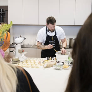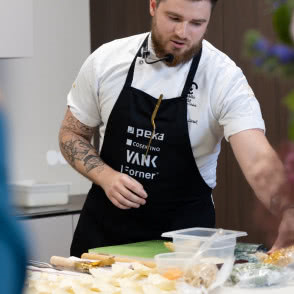 W programie wydarzenia znalazł się również live cooking – pokaz gotowania w kuchni wyposażonej w systemy PEKA, podczas którego kucharz podkreślił znaczenie ergonomii i dobrze zaprojektowanej przestrzeni w codziennej pracy. Wieczór zakończył się networkingiem i możliwością obejrzenia spektakularnych slabów kamienia naturalnego Sensa, eksponowanych przed wejściem do showroomu.