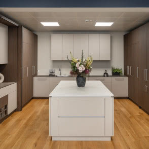 Anita Łopatka: Zależało nam przede wszystkim na tym, by stworzyć miejsce, które będzie inspirowało przyszłych użytkowników kuchni. Chcieliśmy, by osoby odwiedzające showroom mogły poczuć się jak u siebie – zobaczyć różne układy kuchenne, odnaleźć w nich sytuacje projektowe zbliżone do tych, które mają w swoich domach. Dlatego w przestrzeni zaplanowaliśmy kilka scenariuszy kuchni, by każdy mógł znaleźć coś, co go poruszy i z czym się utożsami.