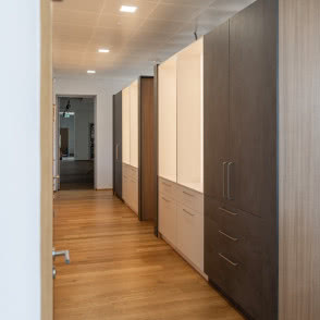 Anita Łopatka: Bardzo zależało nam na odpowiednim oświetleniu, dlatego wszystkie wnętrza szafek są doświetlone. Dzięki temu klienci mogą lepiej zobaczyć, jak wyglądają i działają systemy w środku. Światło pozwala też wydobyć detale konstrukcyjne, ułatwia ocenę funkcjonalności, a jednocześnie tworzy przyjazną, czytelną przestrzeń do testowania rozwiązań. Co ważne – planujemy również wprowadzenie oświetlenia do naszej oferty, więc ekspozycja pełni także funkcję prezentacyjną w tym zakresie.