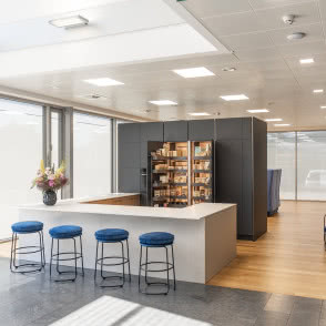 Jednym z rozwiązań, które szczególnie przyciąga uwagę odwiedzających, jest zastosowanie dwóch systemów tandem otwierających się na prawo i lewo. To bardzo efektowne, ale przede wszystkim praktyczne rozwiązanie – dostęp do produktów jest łatwy, a cały system działa niezwykle płynnie.