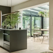 Zielone mieszkanie na Grochowie. Ma dwie szklane oranżerie!