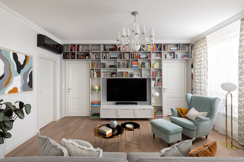 Kolorowa metamorfoza salonu i sypialni w 90-metrowym mieszkaniu na Żoliborzu