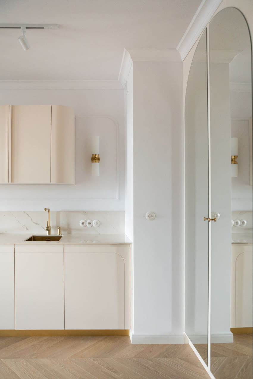 Nowoczesna kawalerka w beżu i złocie. Ma tylko 27 metrów kwadratowych!
