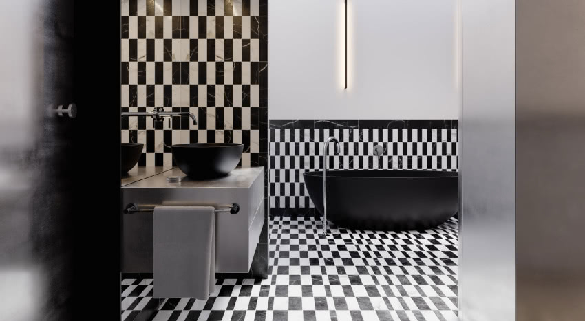 Harmonia kontrastów - odkryj łazienkę w stylu Maximalist Bauhaus pełną elegancji i ekspresji